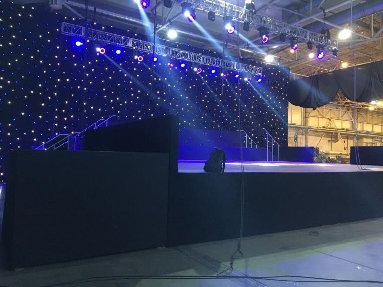 Самое популярное светодиодное "звёздное небо". Работает на RGB светодиодах, что позволяет воспроизводить цветные эффекты на полотнах. На сьёмочной площадке его "любит" камера, так как светодиоды регулируются для необходимой яркости cd. В наявности 16 полотен 12х3 метра. Возможна инсталяция вертикально и горизонтально. Вес одного полотна с контроллером 32 кг.